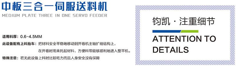 中板三合一伺服送料機(jī)特性: