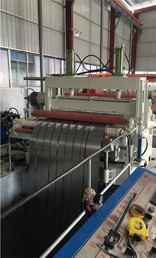 本設(shè)備的工作流程:本設(shè)備是將鋼板(各種金屬材料卷)通過高速精密縱剪加工成需要寬度的專用剪切設(shè)備。本設(shè)備的主要工作主機(jī)由開卷機(jī)、精密圓盤式刀座、張力產(chǎn)生站、收卷機(jī)等四個(gè)主要機(jī)構(gòu)構(gòu)成,中間輔以收紙、運(yùn)料、夾送、板頭剪床、緩沖、引導(dǎo)、覆膜、收卷廢邊、分卷剪床、出料等裝置。