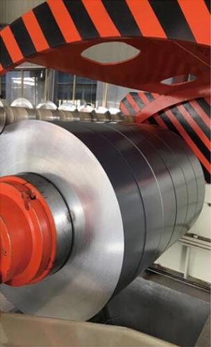 設(shè)備在工作時(shí)送料機(jī)構(gòu)處于被動(dòng)送料狀態(tài),板料通過夾送并經(jīng)板頭液壓剪床剪去不規(guī)則料頭后經(jīng)側(cè)向引導(dǎo)機(jī)構(gòu)進(jìn)入圓盤剪切機(jī)剪切成客戶需要的帶狀條料。縱剪過程中,通過廢邊卷取機(jī)對縱切下來的廢邊迅速進(jìn)行收取成卷狀??v切下來的帶料,通過活套緩沖,并經(jīng)過兩組分離裝置進(jìn)入張力站,通過該張力裝置和卷取機(jī)建立所需的收卷張力,以防止卷取后塌卷。最后由卸料機(jī)構(gòu)把料卷從收料軸上卸到出料小車后運(yùn)出。